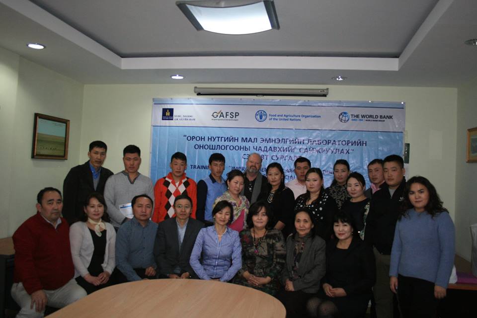 НҮБ-ийн ХХААБ-ын мал аж ахуй дээр суурилсан амьжиргааг дэмжих төслийн хүрээнд 2016 оны 02-р сарын 16-20-нд “Орон нутгийн мал эмнэлгийн лабораторийн оношлох чадавхийг сайжруулах” сэдэвт сургалтыг УМЭАЦТЛ-той хамтран зохион байгуулав. Сургалтанд төсөлд хамрагдаж буй 5 – н аймгийн (Хөвсгөл, Завхан, Баянхонгор, Архангай, Говь-Алтай) 10 малын их эмч оролцож халдварт өвчний оношлогооны ийлдэс, нян, паразит судлалын аргуудыг эзэмшлээ. Цаашид оношлогооны уламжлалт чанарыг хадгалах, дадлагажуулах нь сүлжээ мал эмнэлгийн лабораторийн чадварыг дээшлүүлэхэд ач холбогдолтой юм.
